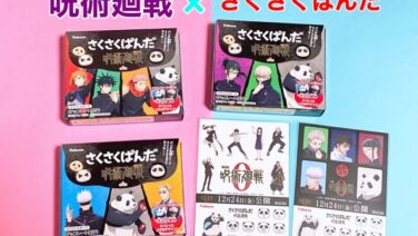 さくさくぱんだ呪術廻戦が、2021年12月7日(火)発売!シールは全20種!更に購入特典として、もうすぐ公開の映画、劇場版呪術廻戦0とのコラボのステッカーをもらうことができます。他にもカバヤさくさくぱんだと呪術廻戦コラボの仕掛けがたくさん!気になるシールのラインナップ一覧や、販売店舗・私が当たったシールなど紹介します。