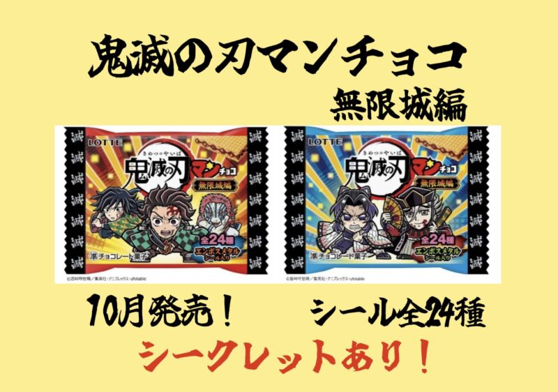 劇場版鬼滅の刃無限城編が大ヒット中の鬼滅の刃、今回の鬼滅の刃マンチョコも無限城編に関するラインナップになっています。
